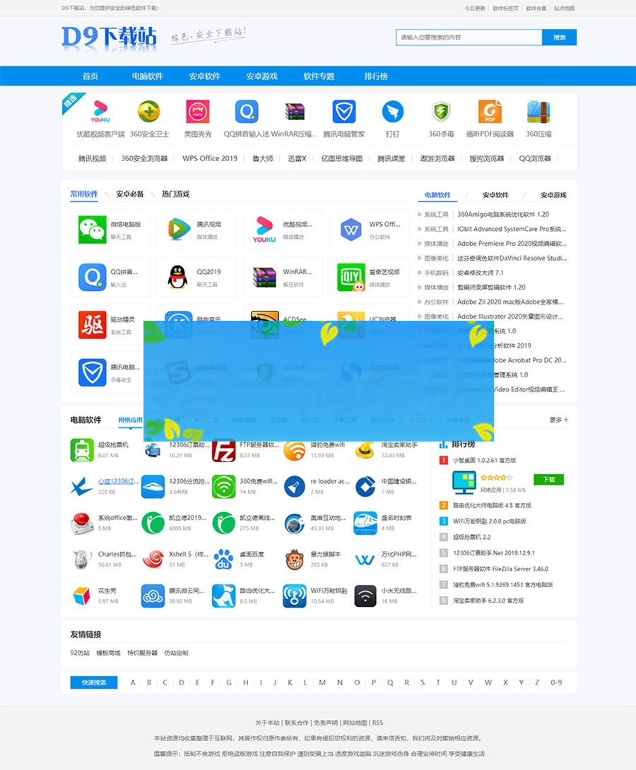 帝国CMS7.5仿《D9下载站》软件应用下载网站源码,页面精美,SEO好,使用方便。主要适合PC+安卓+苹果软件下载类网站使用。